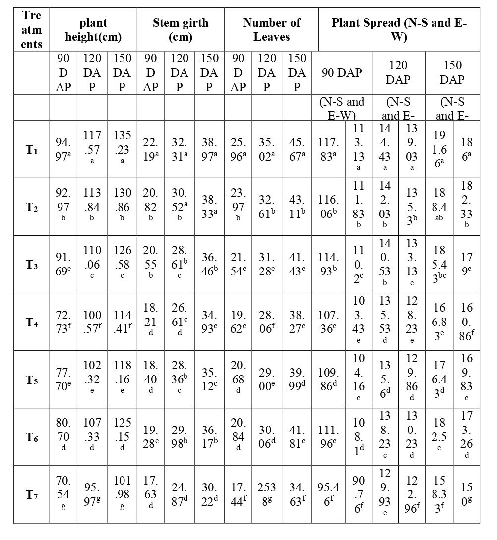 A field experiment was performed to study the effects of foliar applications of CaCO3 and Ca(NO3)2 on growth, quality, yield, and shelf life of papaya (Carica papaya) Cv. Red lady. Calcium (Ca) is one of the major plant nutrients which affects significantly the formation of the cell walls and cell membranes and also enables the production of biomass with proper plant growth and function. In the current experiment, papaya seedlings were well established in the orchard, well-irrigated with standardized nutrient solutions with all required inter-culture activities. Four different pre-harvest foliar application sprays were provided with two varying sources of Ca (CaCO3 and Ca(NO3)2) at three concentrations of each with CaCO3 (2%, 1%, 0.5%) Ca(NO3)2 (2%, 3%, 4%) at different stages of growth like flowering stage, fruit set stage, pre-harvest stage. The study revealed that foliar spray of above mentioned concentrations showed a profound improvement in vegetative growth of plants in terms of their height and diameter as compared to the plants in control treatment and also affected the fruit quality of papaya fruit.