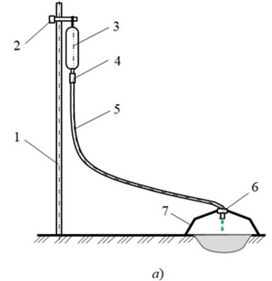 The article gives an analysis of the existing methods of irrigation of irrigated lands in the Republic of Uzbekistan, which for the most part are subject to salinization. As well as the result of a study to establish the main parameters (distance between droppers, water flow, and zone diameter and depth of the moisture distribution zone) of drip irrigation. In addition, the results of a laboratory test were given in which two drops of water per 900 holes and 1800 drops of water were obtained in one second. Then a 100-m pipe drips 162 103 kg of water in one second, which is 0.162 l/second.