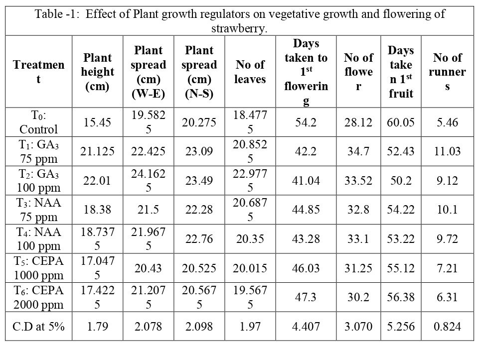 Studies on the Effect of Plant Growth Regulators on Growth and Yield of Strawberry cv. (Winter Dawn) Under Protected Cultivation