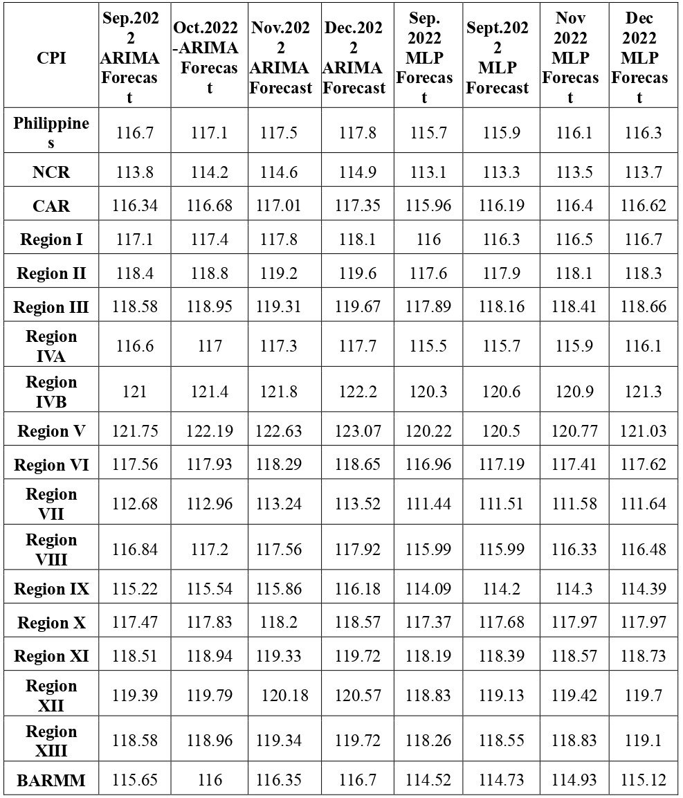 Forecasting the Consumer Price Index in the Regions of the Philippines using Machine Learning for Time Series Models