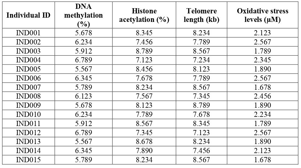 Aging, Epigenetics, Healing Interventions, Health Span, Oxidative Pressure.