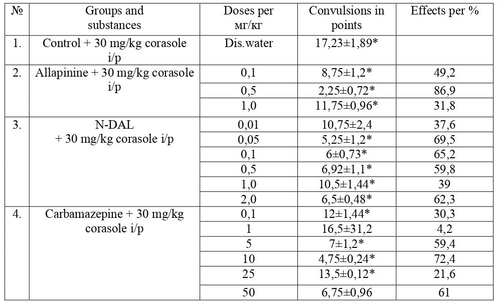 Evaluation of Anticonvulsant Activity of Allapinine and N-Deacetylappaconitine in Experimental Animals