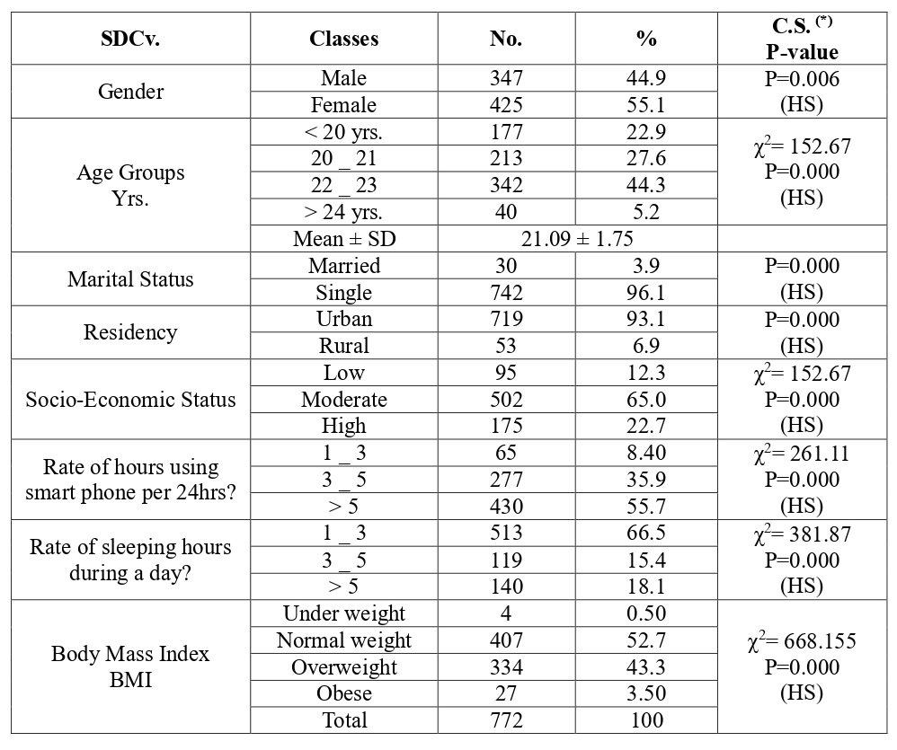 Aim of Study: This paper is aimed to introducing a new creating measurement score to estimating a significant of an extracted factors that reflects weighting of its components in terms of proposed studied domains for assessing status of impacts Smartphone addiction, in a way that achieving to the core of the evaluation process for new observation misuse of Smartphone among medical faculty students. Methods: A cross-sectional design using a convenient sampling method which were selected of data, of sample size 772 participants from different studying stages concerning of medical and health faculties in Kirkuk University. Smartphone addiction scale (SAS), Nordic questionnaires for the analysis of musculoskeletal symptoms and the severity of Digital Vision Syndrome (DVS) was measured using a twelvee-item was using. Data was analyzed using factor analysis of principle components method by using (SPSS) application, version 22. Results: The study sample included 347 males (44.9%) and 425 females (55.1%), with an average age of 21.09 ± 1.75. Primary assessments showed highly significant relationships (P<0.01) among the studied domains. The extracted factors revealed two dominant components, accounting for 67.22% and 32.78% of the total covariance, named the "Psycho-Socio Impact Factor" and "Physical Impact Factor," respectively. These findings offer a clear and robust understanding of the interrelation between the studied domains. Conclusions: Factor analysis identified two main factors: the psycho-socio factor, related to family, environment, and psychological aspects, and the physical impact factor, linked to vision and musculoskeletal health. These findings suggest that interventions for smartphone misuse should target these interconnected factors to reduce negative effects. Additionally, the research highlights the importance of these domains in developing health-related quality of life programs, awareness workshops, and research into acquired autism in children.